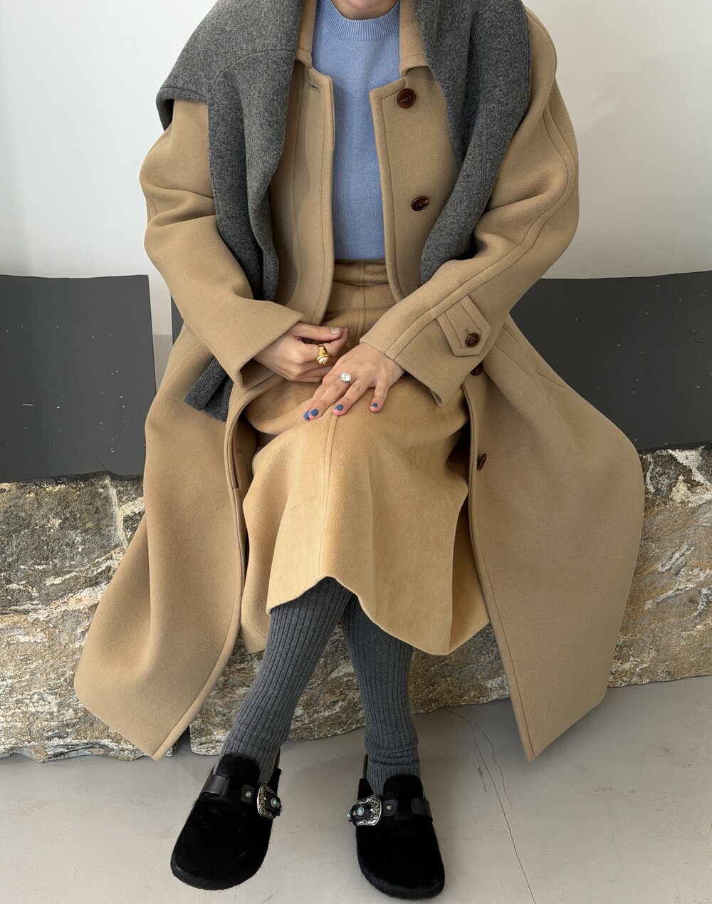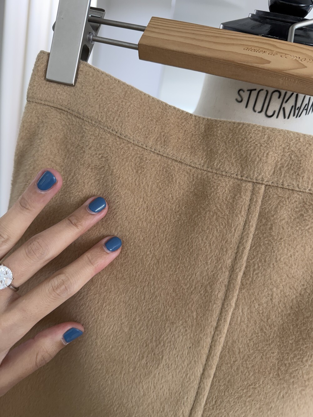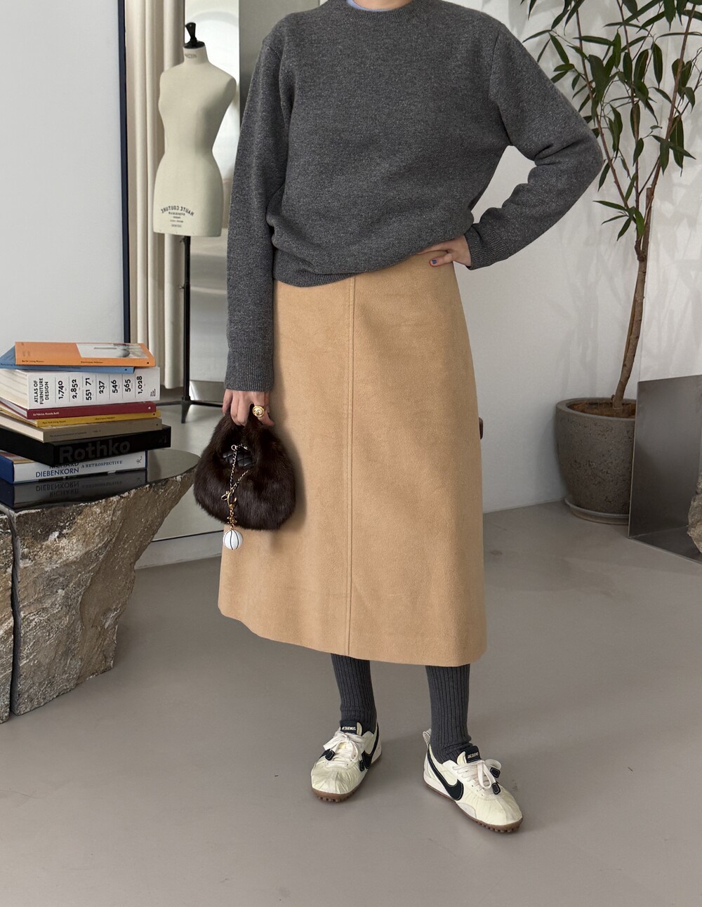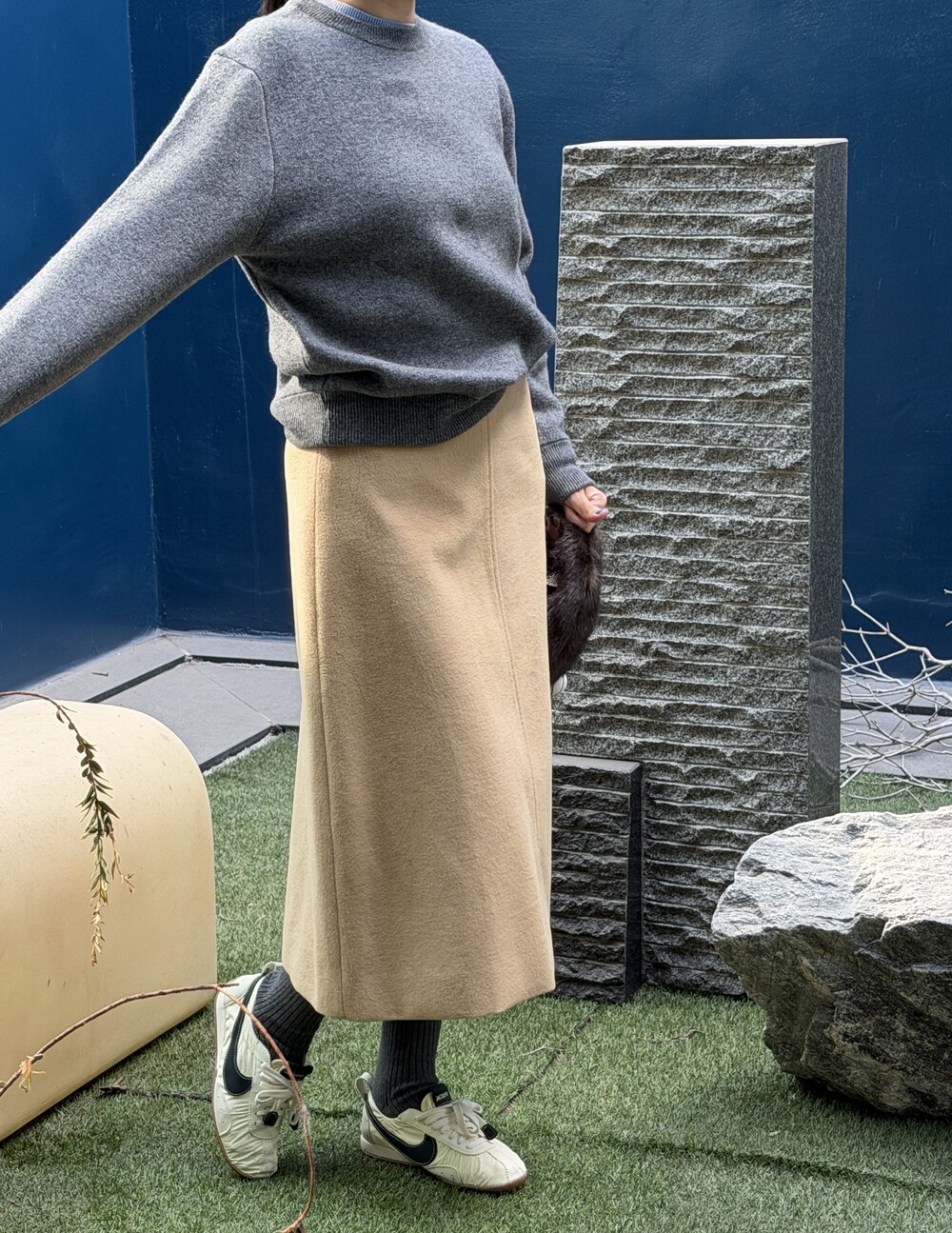 겉은 송치 느낌의, 울 성의 부드럽고 따뜻한 질감과 적당한 두께감을 조합한 스커트입니다.