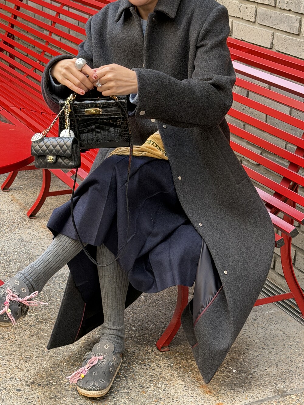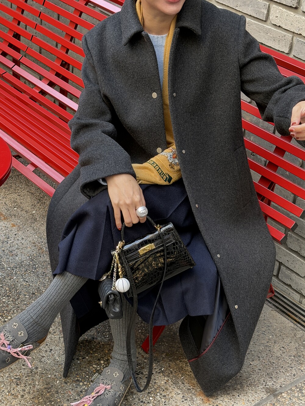 컬러감 그리고 전체적인 길이감의 발란스를 모두 조율하여 아뜰리에 드 쎄모먼만의 완벽한 코트를 완성했습니다.