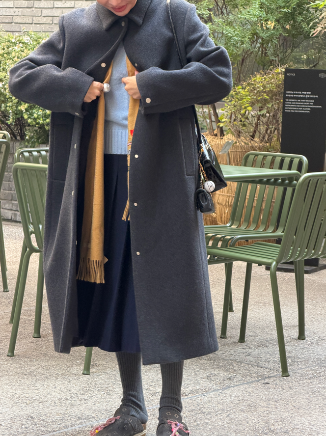 심플한 아름다움을 보여주는 클래식한 디자인의 울 코트로 유행에 구애받지 않으며 데일리로 입기에 적당합니다.