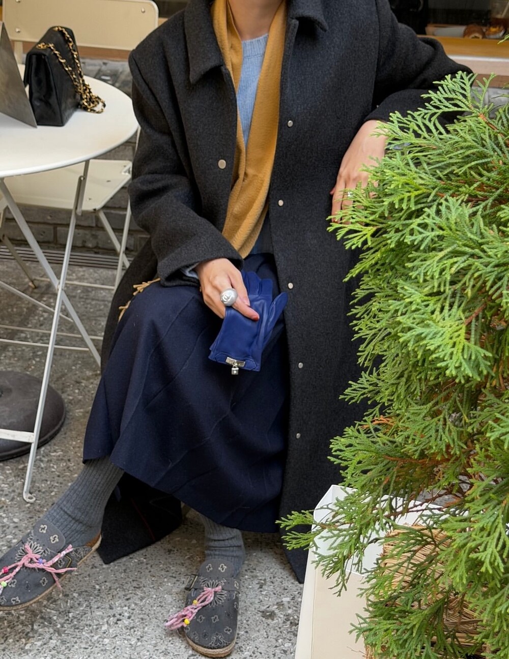 메탈 버클과 터콰이즈풍 장식이 더해 져 묵직한 텍스처와 함께 보헤미안 무드를 살려