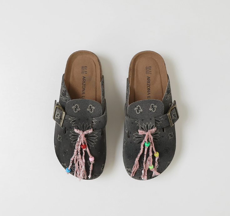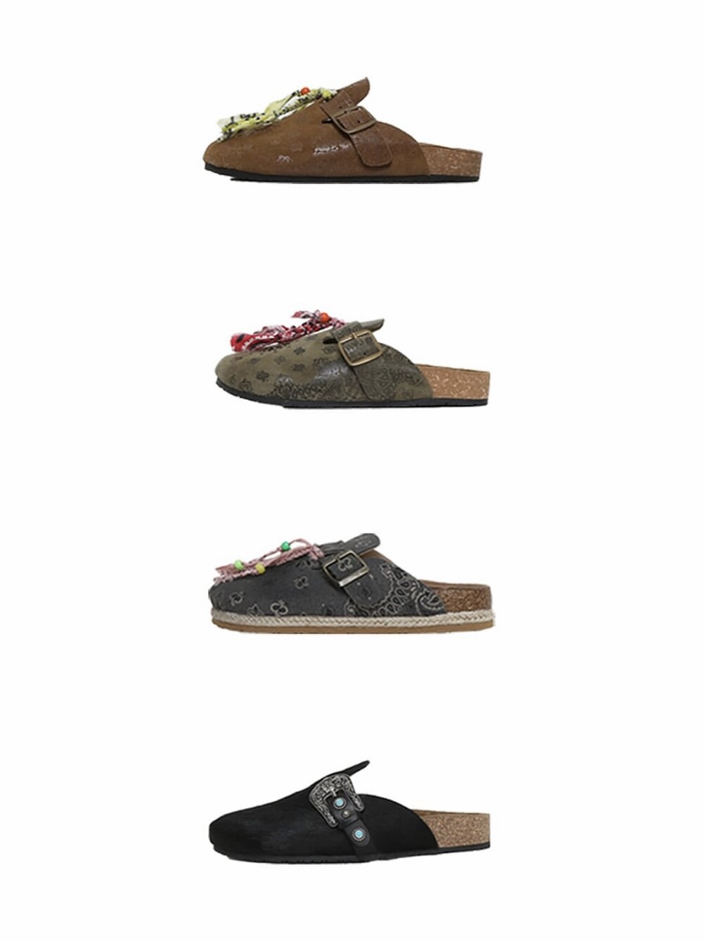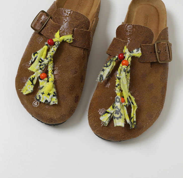 : 반다나 엠보싱 스웨이드에 윗부분은 버클과 유니크한 반다나 장식 디자인