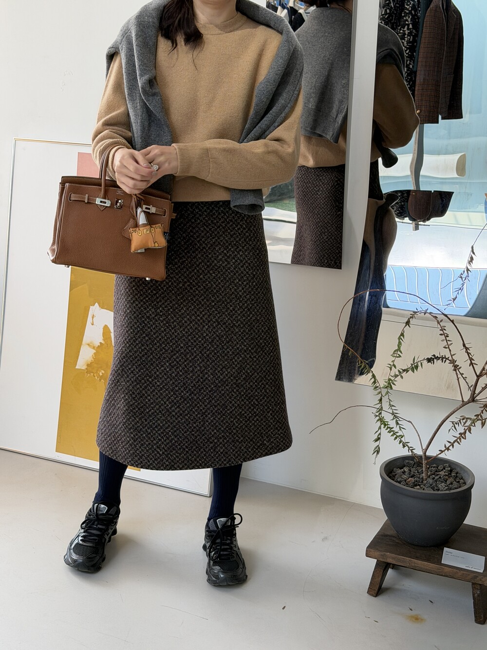 클래식한 자켓, 편안한 니트, 셔츠와도 스타일링이 가능한 스커트로
