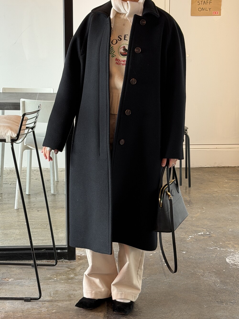코트는 세가지 사이즈로만 진행되며 적당한 여유감이 있는 사이즈감으로 진행됩니다.