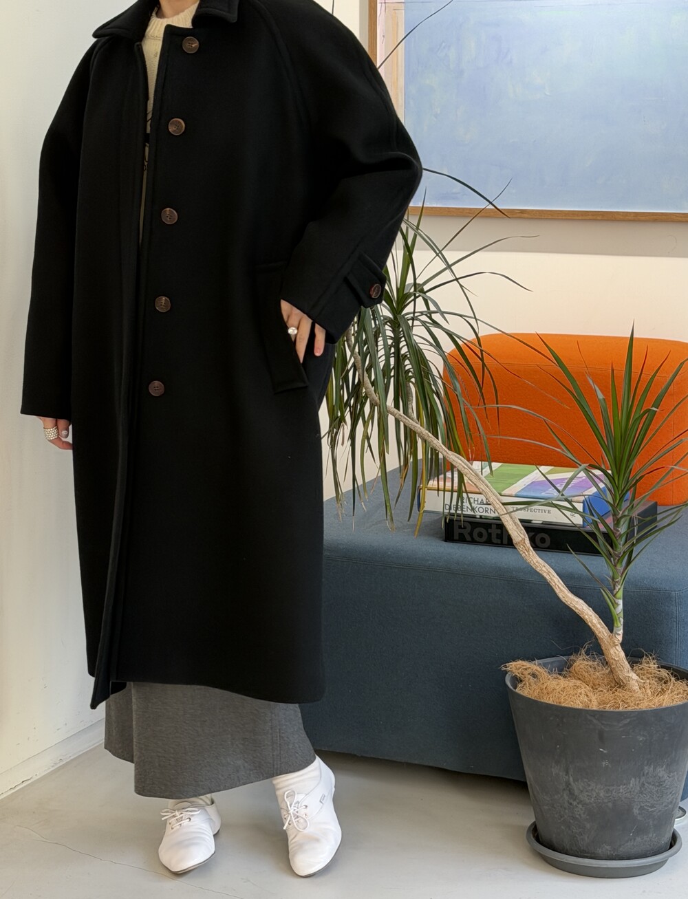 풍성한 실루엣과 어우러진 긴 길이감, 자연스러운 움직임에서 오는 볼륨감이 고급스럽습니다.