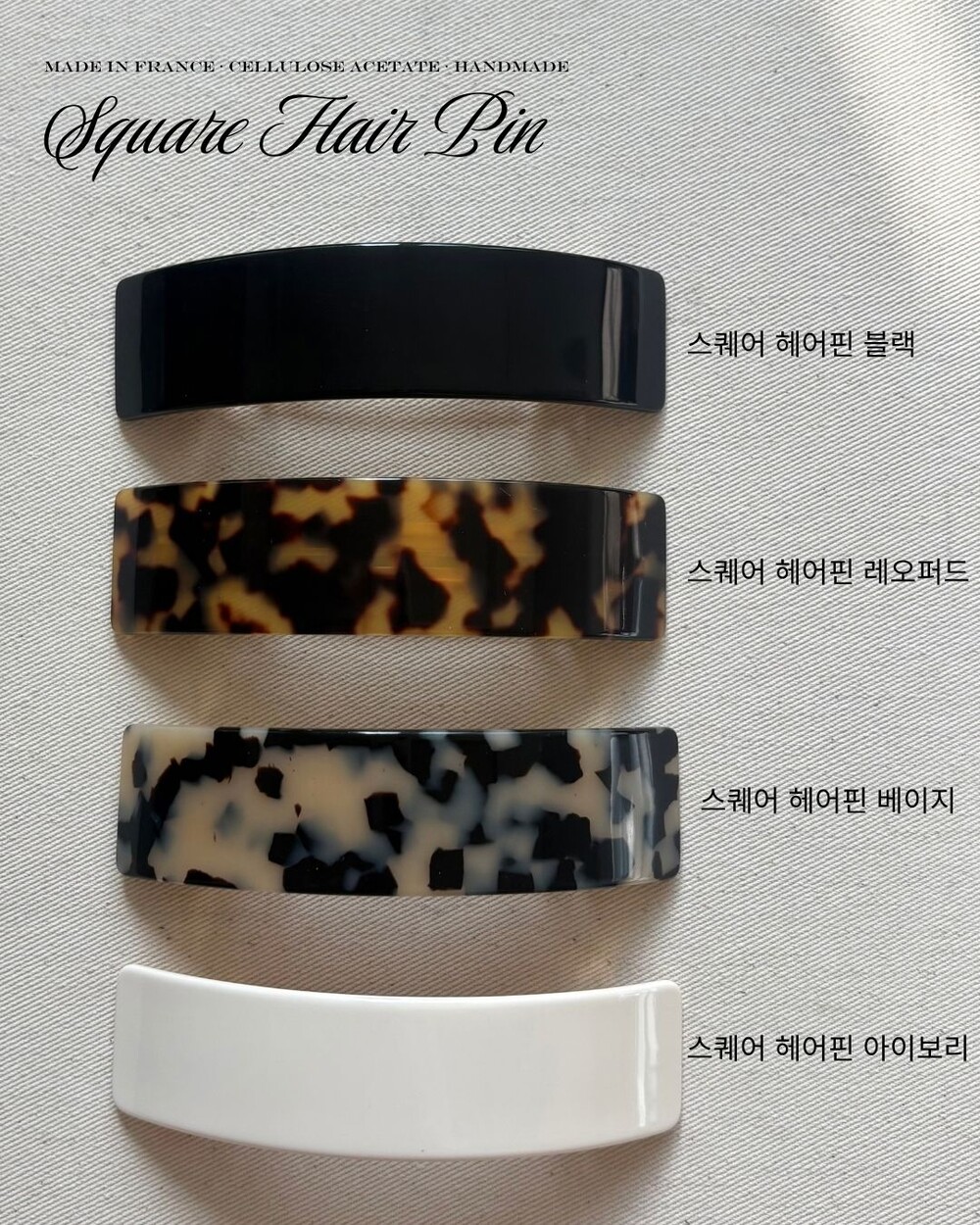 헤어밴드, 바렛, 클로집, 핀까지하나의 기준으로 정리된 라인업입니다.